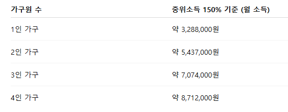 🔎 중위소득 150% 기준표 (2025년 기준)