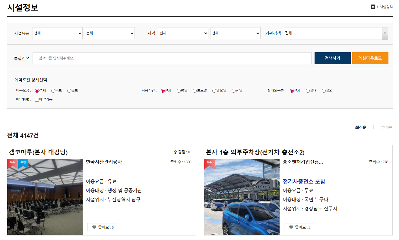 공공기관이 보유한 공간, 장비, 물품 등을 무료 또는 저렴한 비용으로 국민 누구나 이용할 수 있도록 공개하고 있습니다.