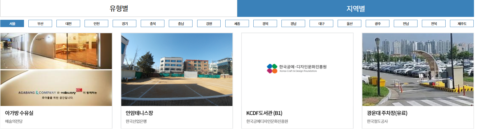 현재 예약 가능한 시설은 계속 확대 중이며, 다음과 같은 유형의 공간을 중심으로 운영됩니다.