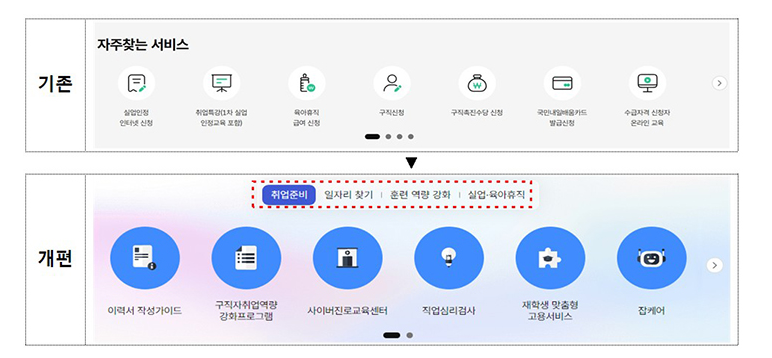 이번 개편은 단순한 디자인 변경이 아닌, 지난 1년간 축적된 이용 데이터와 국민 의견을 반영한 맞춤형 고용서비스 개편입니다.