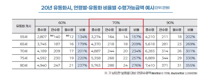55세부터 10년 동안 받을 경우 → 매달 약 14만 원